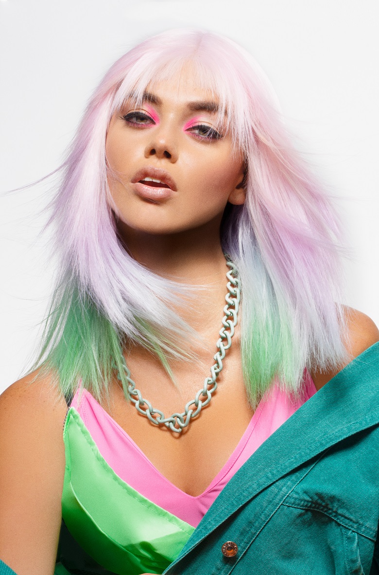 El cabello se desliza a través de la atmósfera enérgica que nos sugiere todo aquello que acaba de llegar, por eso las texturas están llenas de esta electricidad creativa, los colores son intensos, reflejo de las emociones, así como de los pálpitos que ocasionan los nuevos hallazgos.