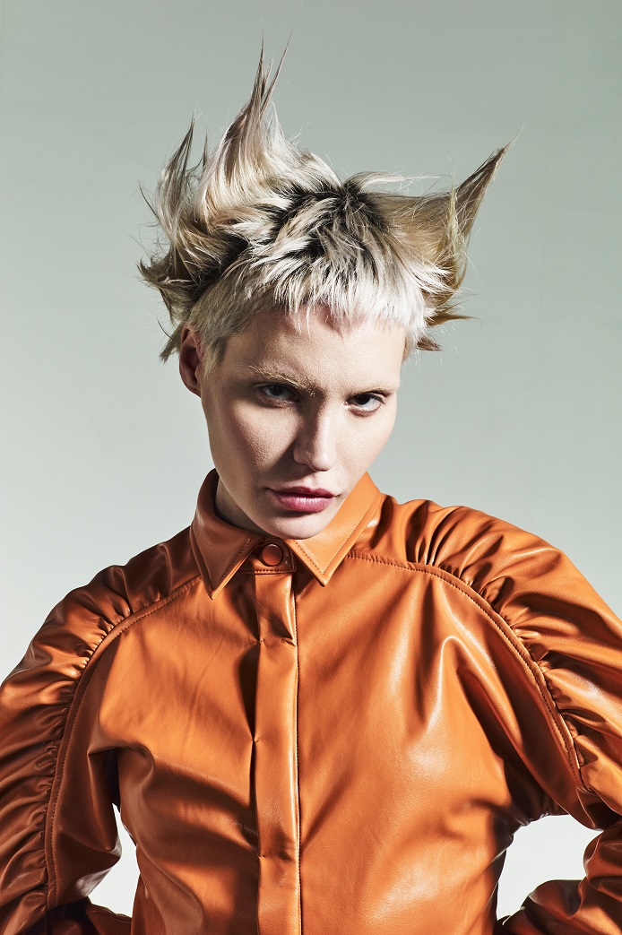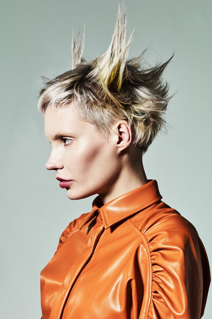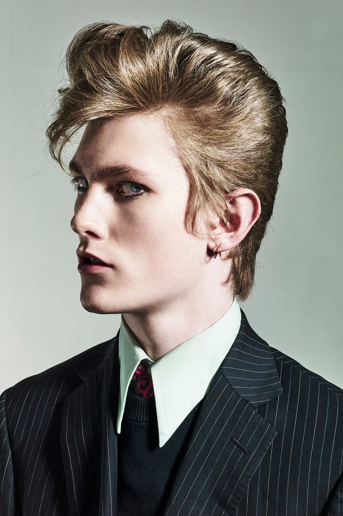 Esta colección modern-retro incluye inspiración de los años ´20, ´50 y ´70 y los años ´80 con teddy boy, se encuentra con cortes de pelo de Bowie, elementos de las chicas hippies de capas largas, punk con crops de El fin DIY Punk y mullets gelificados.