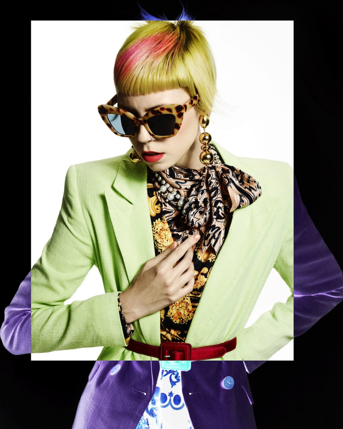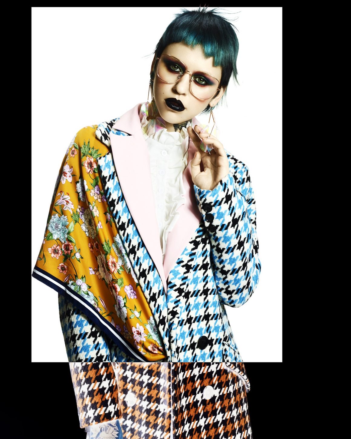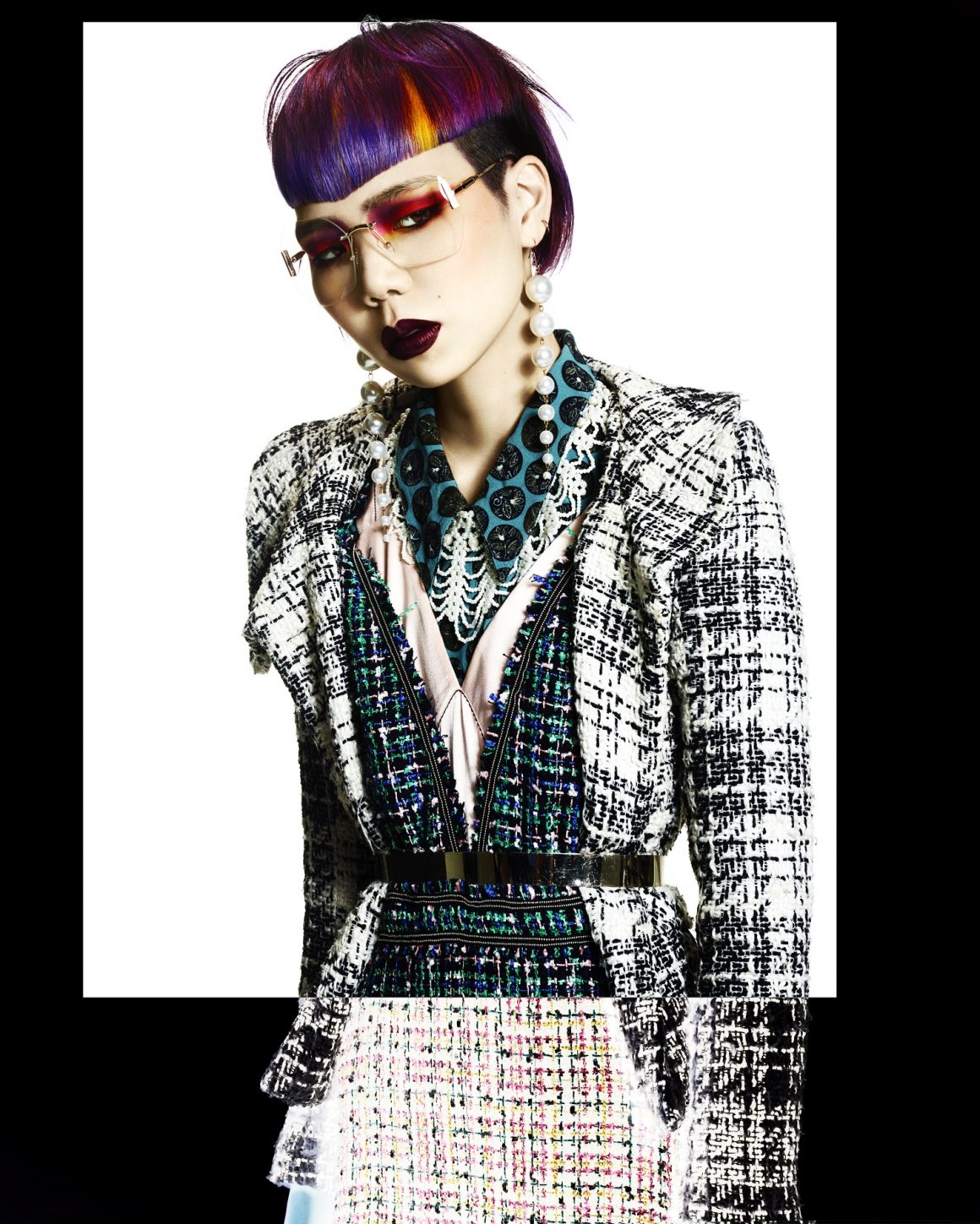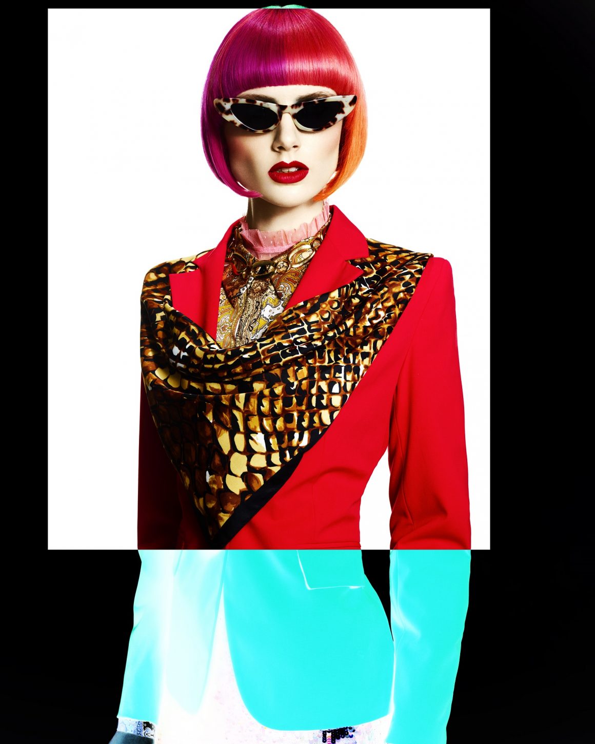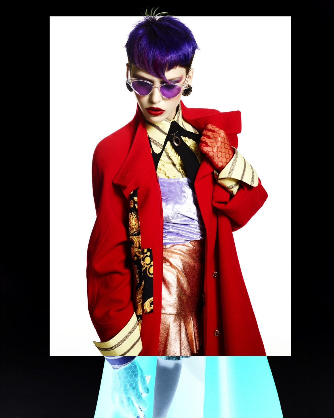 La última colección de Shogo Ideguchi imagina el diseño contemporáneo de la I.A. (Inteligencia Artificial) con un cambio de tendencia de los años ́50. Las líneas limpias y clínicas, los fuertes flequillos y los colores direccionales combinados con el maquillaje pálido ofrecen un aspecto humanoide con ropa y estilo que proporcionan la calidez de la nostalgia de los años ́50.