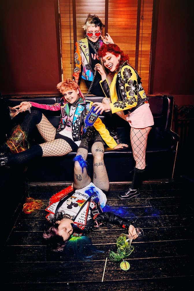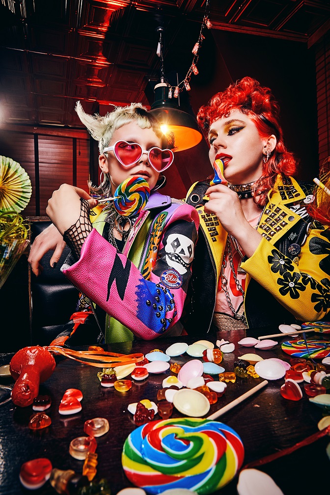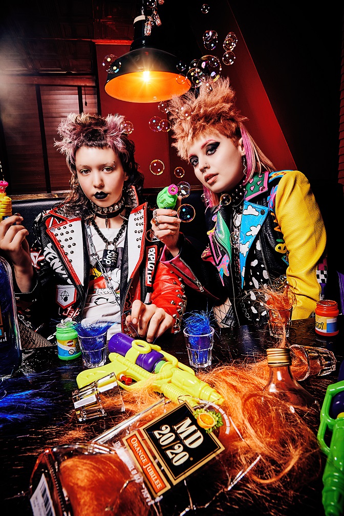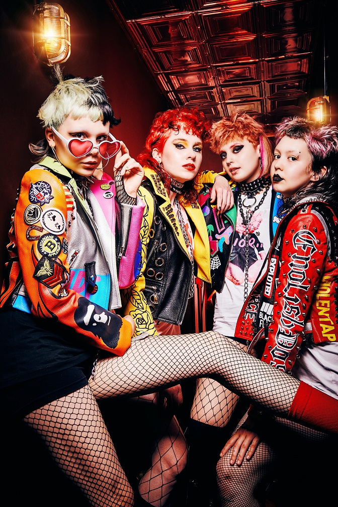 Entre estas capas de ropa, las chicas esconden armas, cadenas, pistolas de agua y pistolas de burbujas. Su pelo fusiona colores vivos, texturas extremas y flecos masticados por perros; los elementos finales de su estilo rebelde.