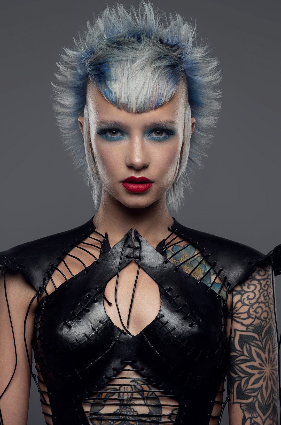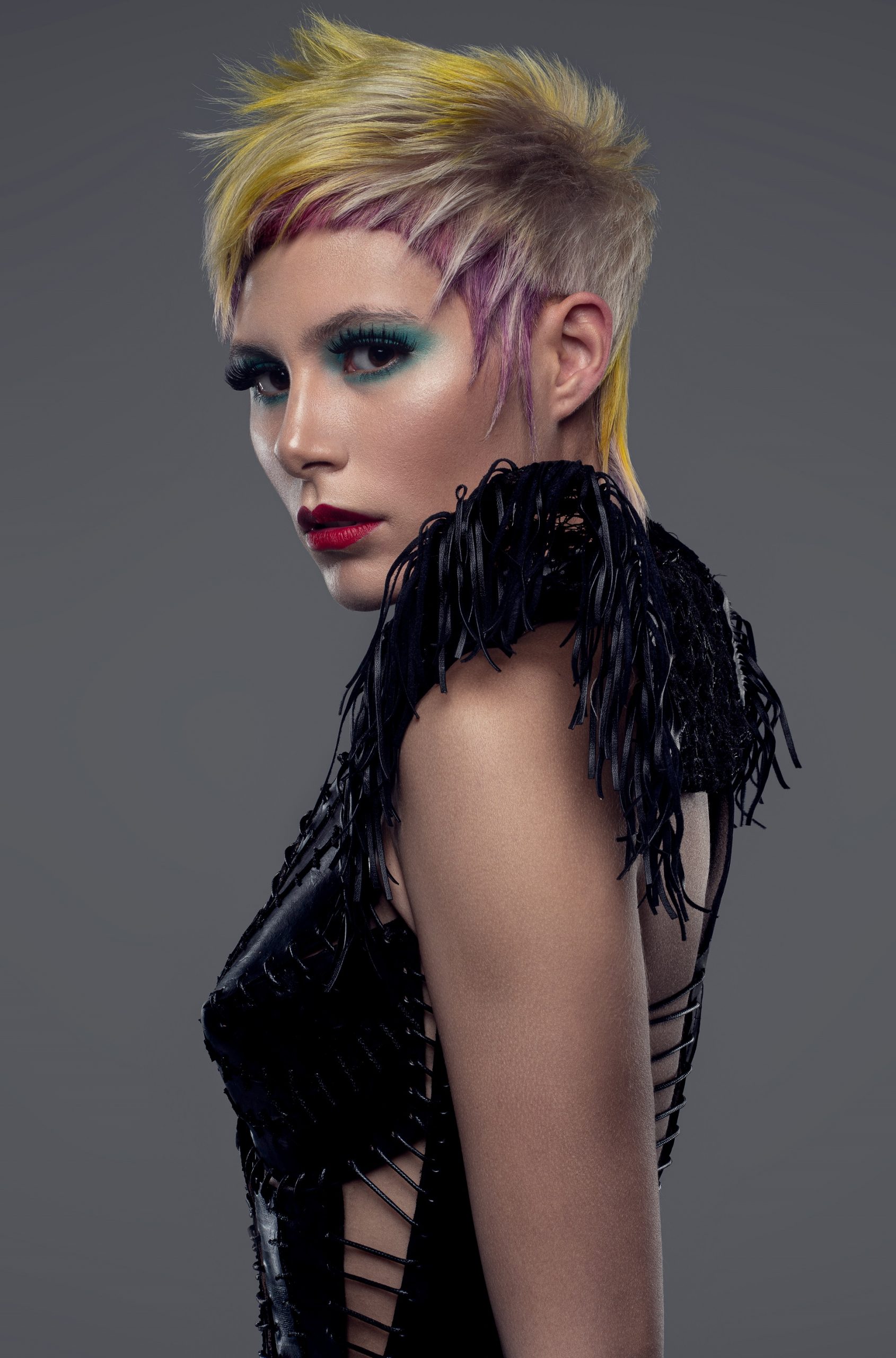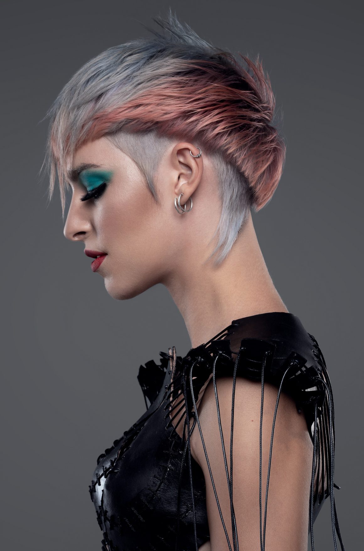 El cabello presenta cortes que rompen con lo establecido y tonos fríos que, pese a su diferencia, armonizan entre sí. Juegan con diferentes volúmenes, siempre en corto, para conseguir un efecto desafiante.